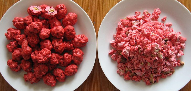 La praline rose est une spécialité de la région lyonnaise et se déguste en bonbon ou dans de délicieuses recettes. Elle est composée d’une amande, une noisette ou un amandon, enrobé de sucre cuit auquel on a ajouté un colorant rose qui lui donne sa couleur légendaire.