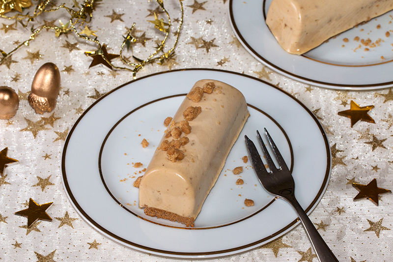 • Démoulez les bûchettes aux spéculoos sur une assiette et décorez avec le reste de crumble.