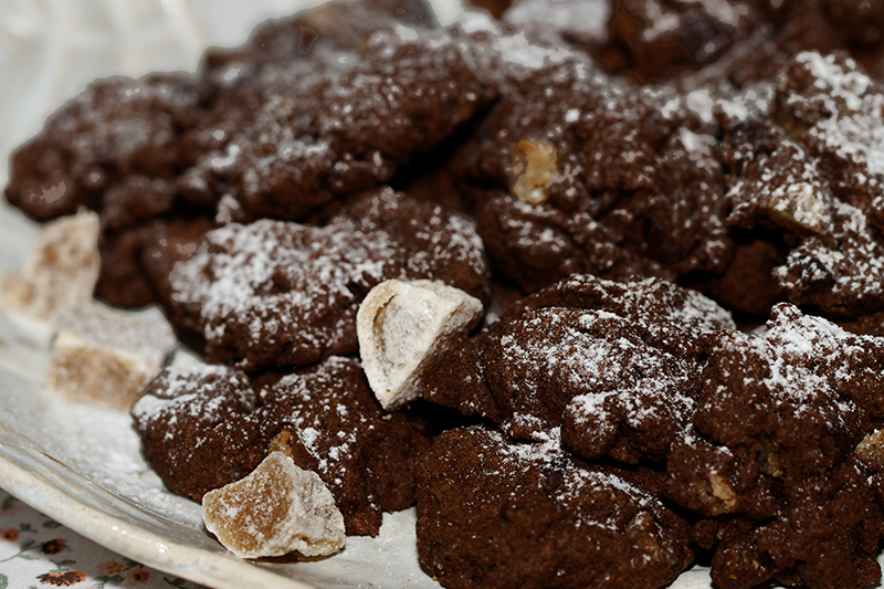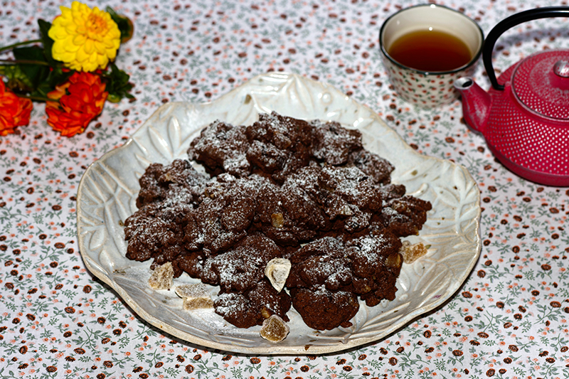 Préparation des cookies au chocolat et gingembre confit