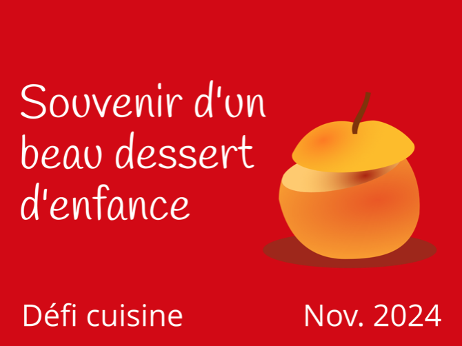 Avec cette recette je participe au défi du mois de recette.de, piloté par Martine du blog kilomètre-zero, qui a choisi : Souvenir d’un beau dessert d’enfance