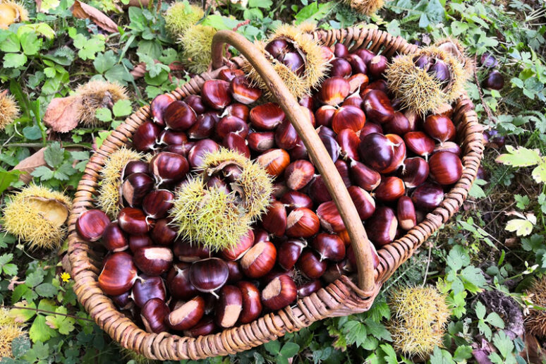 La châtaigne est le fruit d’automne par excellence. J’ai la chance d’habiter le long d’un bois de châtaignier et chaque année je ramasse les châtaignes qui tombent dans le clos de la maison.