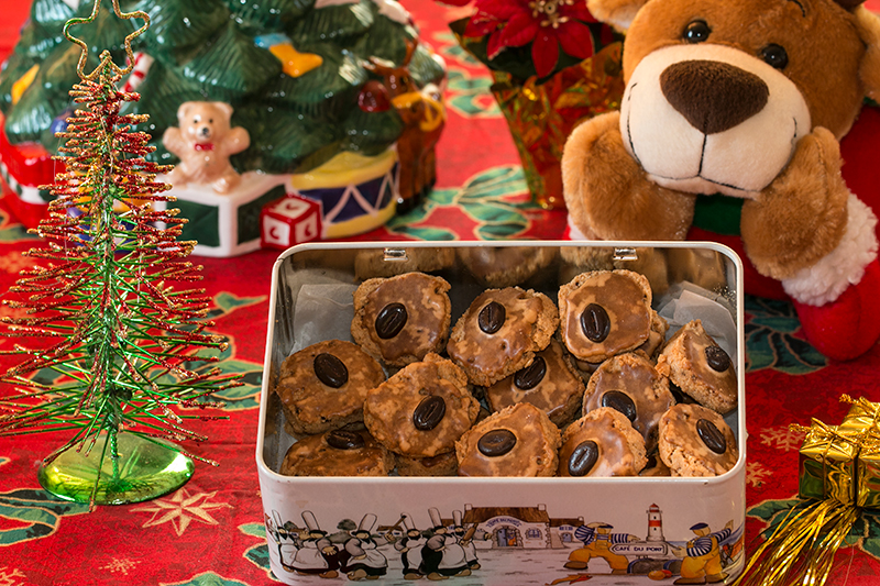 Des Rochers au café expresso, une variété de bredeles tout à fait gourmand pour garnir mes jolies boîtes en cette période des fêtes. Toujours la référence du grimoire de mon amie Lilly.