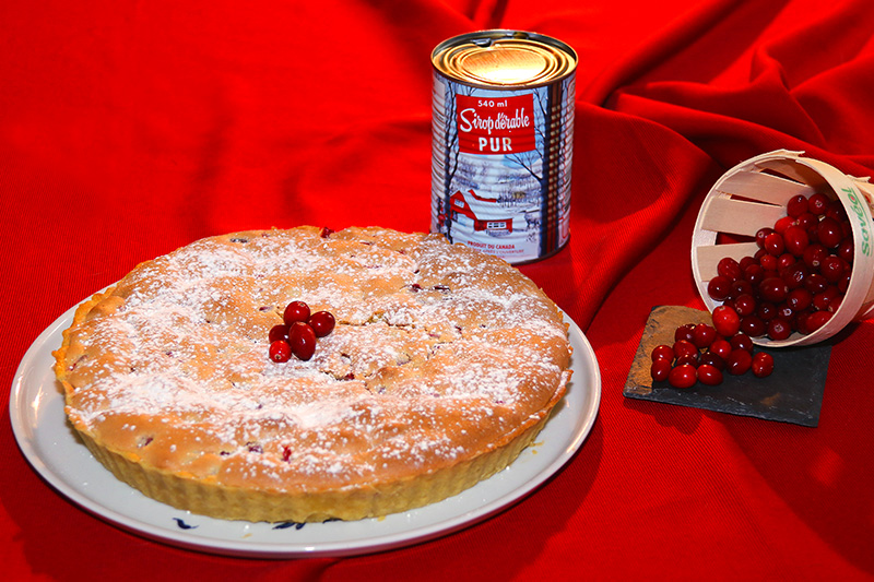 Avec le sirop d’érable et les canneberges, cette tarte doit être vraiment exquise !